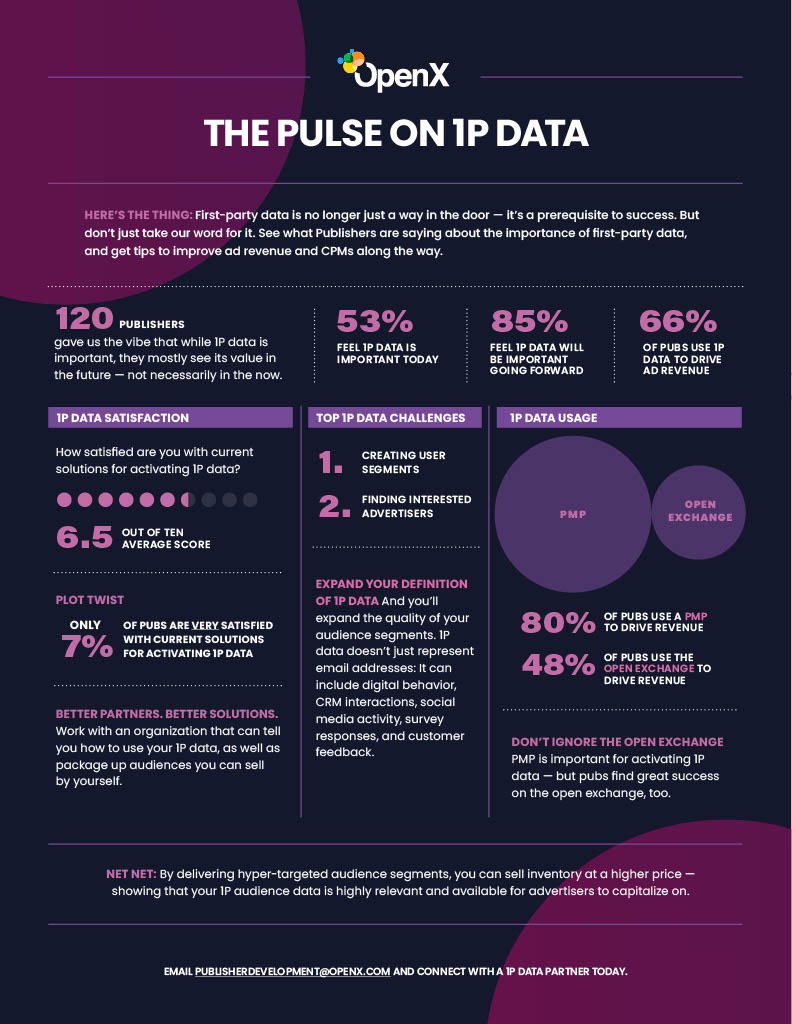 Take a look at our infographic below to learn more. To find out how OpenX can help you make the most of your first-party data, email our team at pubdev@openx.com and we’ll get started right away.